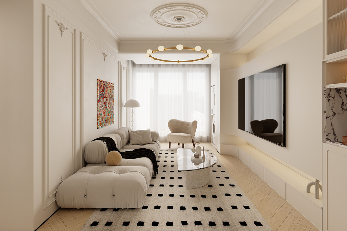 熙和府,夫妻和孩子,长辈居住一家四口,孩子还小,长辈和孩子睡南房间。女业主对美感要求极高,寻求法式的浪漫感觉。 坚持三房的思路,北房间作为后期的预留,厨房做半开放式,空间整合后操作极其便利。